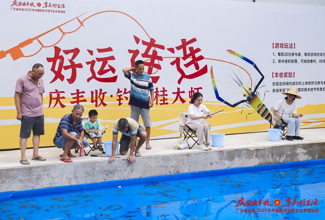 在今年丰收节广东主会场,“高桂虾”成为串联起产业展示与农文旅体验的主线。在铁岗社区,除了观赏创意节目,还能体验钓虾游戏、烹饪品鲜,活动现场丰富的“虾”元素,让各地游客、采购商纷纷“种草”高要罗氏沼虾、记住“高桂虾”特色名片,促成了一笔笔消费和采购订单。